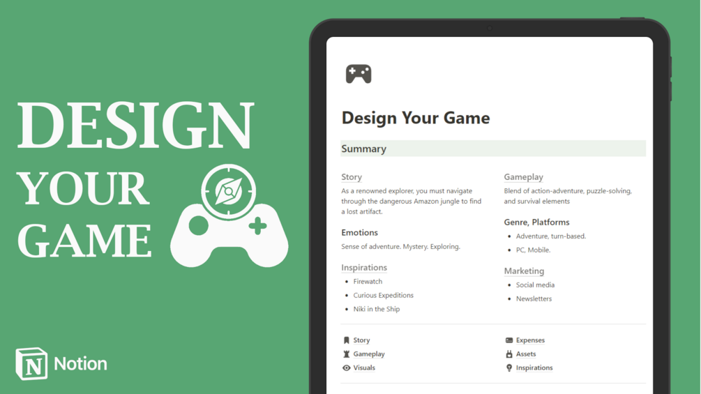 This template is specifically designed for Notion, a popular productivity and collaboration tool, and offers a wide range of features to support your game design journey. With pre-built sections for idea generation, character creation, level design, asset management, and expense tracking, you'll have everything you need to bring your vision to life.